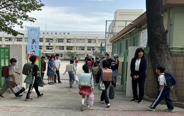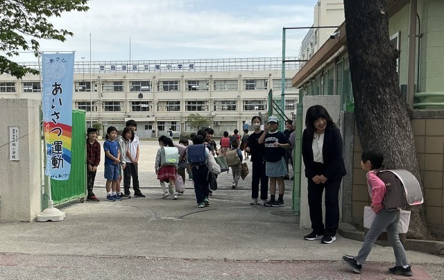 今日からの5日間は「あいさつ週間」です。代表委員が正門に立ち、登校する子どもたちと元気にあいさつを交わしています。