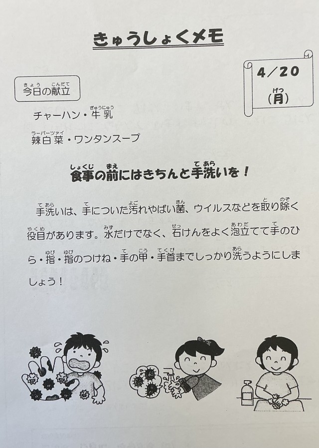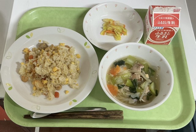 【今日の献立】チャーハン・牛乳・辣白菜・ワンタンスープ