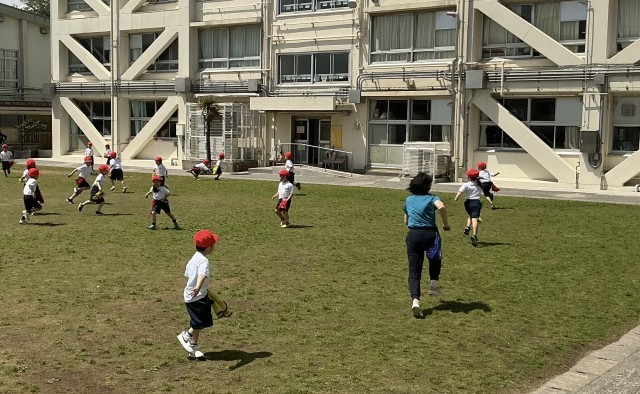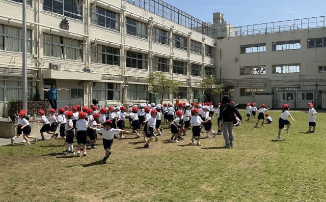 1年生 体育 公開日 2026/04/20 更新日 2026/04/20 今日のできごと リズムに乗って楽しそうに準備運動をしていました。ラインの上を思い切り走ったり、フラッグとりゲームをしたりして楽しみました。 +2