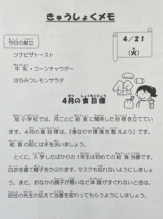 4月21日(火)の給食