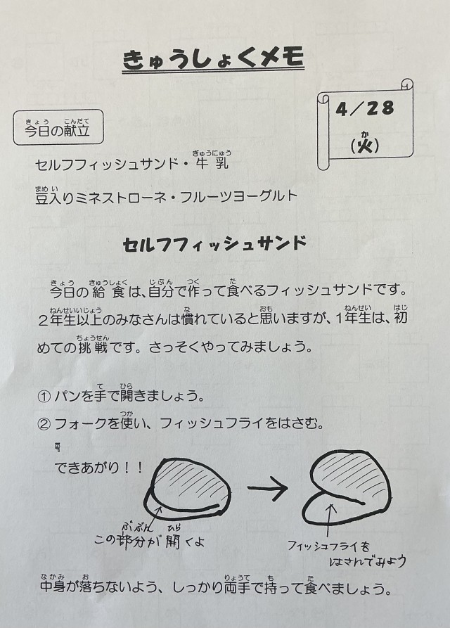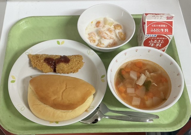 【今日の献立】セルフフィッシュサンド・牛乳・豆入りミネストローネ・フルーツヨーグルト