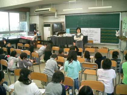 音楽室では4年生が楽譜を書き込んでいます。旭の子どもたちの歌声はいつ聴いても心が洗われます。公開週間の際には、ぜひ聴きにいらしてください。