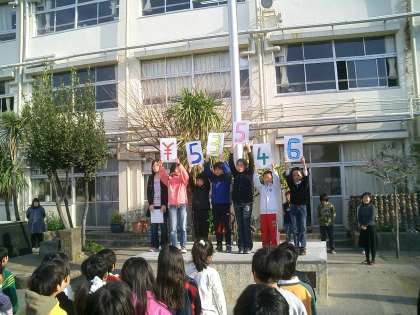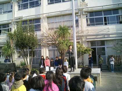 続いて、代表委員会の人たちが2学期末に行ったユニセフ募金の集計結果を発表しました。なんと・・・53546円も集まりました。ご協力ありがとうございました。代表委員会の人たち、ご苦労さま。