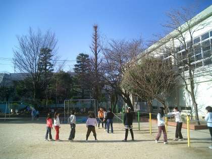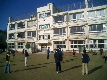 旭小の学校生活は朝の外遊びから始まります。8時25分から40分までの15分間子どもたちは外で元気に遊んでいます。その間に先生方は打ち合わせをしています。