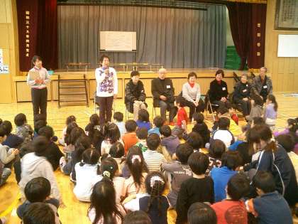 今日は1・2年生の生活科学習「昔遊びをしよう」の最終回です。今回も地域の方々7名のご協力で、子どもたちは楽しいひとときを過ごすことができました。ステージの上では、おはじき・お手玉・あやとり。体育館フロアーでは、竹馬・こま・ヨーヨー・けん玉・ベーゴマなど、子どもたちはそれぞれの昔遊びを大いに楽しみました。昨日とはうって変わって寒い1日でしたが、子どもたちは地域の人たちに教えてもらいながら、一生懸命頑張っていました。