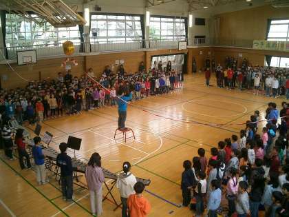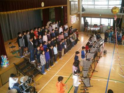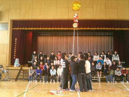 『6年生を送る会』 その5 公開日 2010/03/01 更新日 2010/03/01 今日のできごと 写真は、(上)全校合唱「大切なもの」2月の音楽朝会で歌った歌でした。 (中)全校で美しいハーモニー (下)いよいよクライマックス!! くす玉割りです・・・が?? なかなかくす玉が割れません。ひもを引っ張ったら、ひもが切れてしまいました。 ああ・・・困った!!