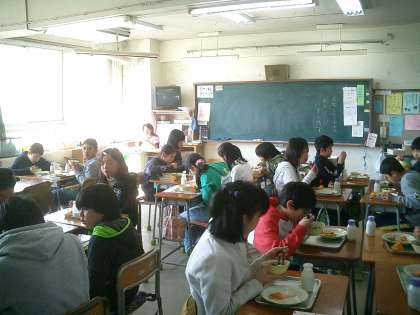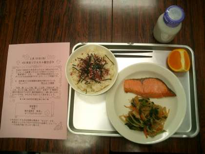 そして鮭の塩焼きと煮ひたし。そしてくだものは、和歌山産のせとかというオレンジでした。とてもおいしかったです。6年生も喜んで旭茶漬けを食べていました。