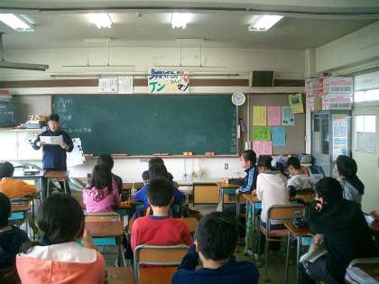 2組では社会の授業です。自分たちで調べた世界の国々について、クイズ形式で楽しく行っていました。