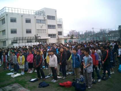 平成22年度 第1学期始業式 その1 公開日 2010/04/06 更新日 2010/04/06 今日のできごと 満開の桜と春の輝く太陽が、学校全体を明るくさわやかにしてくれて平成22年度のスタートがきれました。 始業式は校庭で行いました。退職された先生方、異動された先生方、そして4月から仲間入りした新しい先生方・主事さん方の紹介をしました。 そして、担任の先生の発表です。少しざわついたりしましたが、新しい先生、主事さんとの出会いに、子どもたちも真剣な表情で臨んでいました。