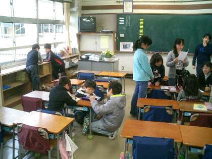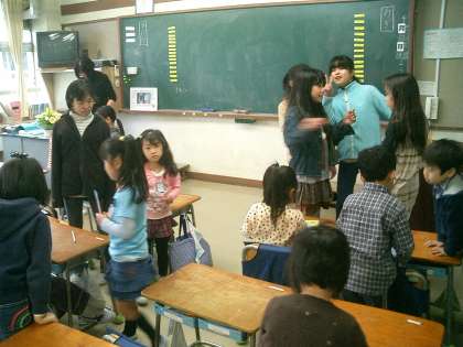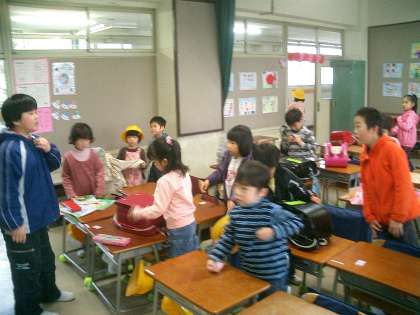 6年生が1年生のお世話をしています。 公開日 2010/04/12 更新日 2010/04/12 今日のできごと 1年生が登校して教室に入ってくると、6年生のお兄さんお姉さん方がやさしくお世話をしてくれています。休み時間も同じように一緒に遊んでくれています。今日は冷たい雨、休み時間は教室内で6年生が1年生と一緒に過ごしていました。ありがとう 6年生。