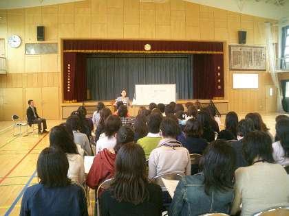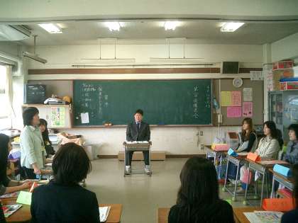 その後、体育館と多目的室に分かれて、学年保護者会を30分間行います。そして、各学級教室での保護者会を行いました。