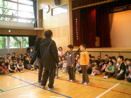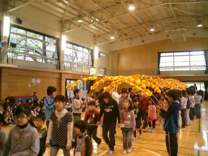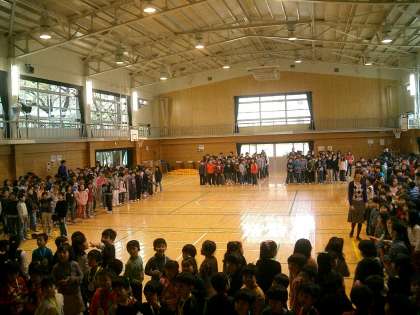 『1年生を迎える会』 その1 公開日 2010/04/15 更新日 2010/04/15 今日のできごと 今朝は8時30分から9時までの朝の時間を使って、体育館で『1年生を迎える会』が楽しく行われました。代表委員会の人たちの司会進行で始まりました。5年生が花のアーチで迎える中を、6年生に手をつながれて可愛い1年生の入場です。どの子も首にメダルをかけています。このメダルは、6年生が作ったもので、裏には作った6年生のメッセージが書いてありました。