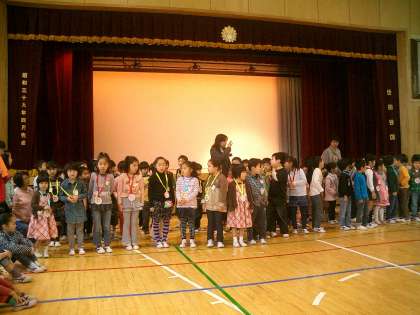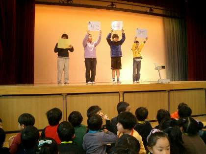 「♪1年生になったら♪」の歌をみんなで歌った後、恒例の旭小クイズです。