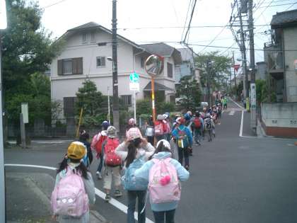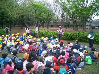 1・2年生遠足 『駒沢公園』 その1 公開日 2010/04/27 更新日 2010/04/27 今日のできごと 一週間前からお天気が心配でしたが、なんとか遠足に行ける曇り空です。子どもたちの元気とパワーが雨を押しとどめてくれました。校庭に集合して、9時に学校を出発です。 150人の列ですから、交通ルールをしっかり守り、安全第一に駒沢公園に向かいました。着いてすぐに、クラスごとに写真を撮りました。
