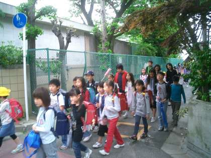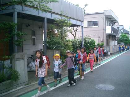 朝8時05分過ぎから、登校班による登校が始まります。高学年の班長さん副班長さんが低学年や中学年の子たちをサンドイッチして、安全に登校しています。きちんと右側を歩いてくる班が多いです。たてわりの交流も芽生えています。係の保護者の皆様、いつもありがとうございます。
