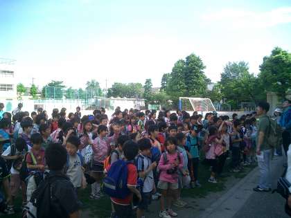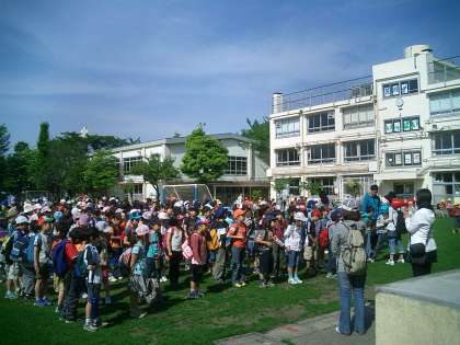 3度目の今日は、雲ひとつない青空のもと、元気に多摩動物公園に出かけて行きました。「行ってくるね!!」とうれしそうな顔。そして3時半ごろ、日に焼けたたくさんの真っ赤な顔が学校に戻ってきました。