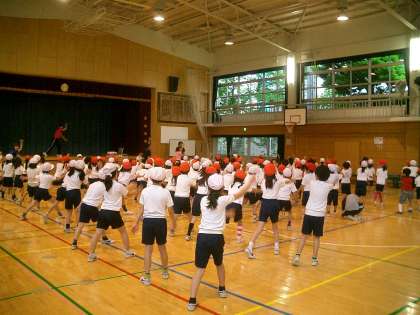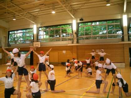 学年練習が始まりました。 公開日 2010/05/24 更新日 2010/05/24 今日のできごと 1・2時間目、1年生と2年生が合同で『ズンドコロック』の練習を行いました。初めてなので、子どもたちの動きもこれからですが、リズムに乗って楽しそうに踊りをおぼえていました。5時間目は6年生が組体操の練習です。昨年5年生の時に経験しているので、流れはわかっています。いかに集団の美を表現するか、最高学年の6年生 頑張っています。