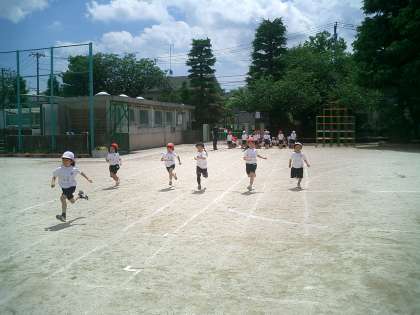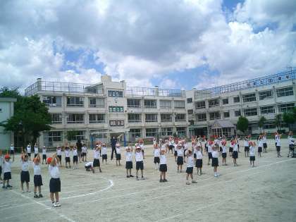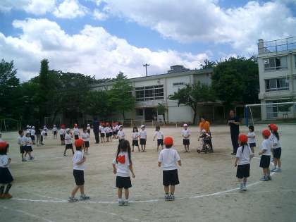 校庭での練習 1年生 公開日 2010/05/27 更新日 2010/05/27 今日のできごと 1年生は4時間目、校庭で『ズンドコロック』とかけっこの練習をしました。今まで体育館の練習が多かったので、初めて校庭で踊りの練習です。広さが違うので、位置取りを確かめ、さらに踊りの後半部分は、体形移動して円をクラスごとに作ります。先生の話をしっかり聞いて、1年生とても頑張っていました。最後に力いっぱい走りました。