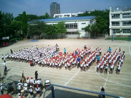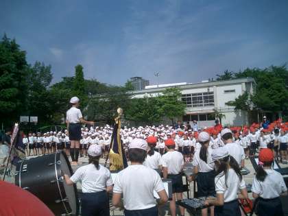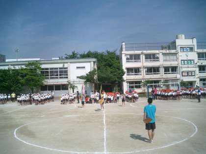 全校練習 (第1日目) その1 公開日 2010/06/01 更新日 2010/06/01 今日のできごと 今朝は8時30分より第1回目の全校練習が行われました。はじめに開会式の練習です。 [入場行進] [1年生のはじめのことば] [優勝旗杯返還] [代表委員会スローガン] [応援団長の誓い] [運動会の歌]と続いていきます。 そのあと、応援の練習と大玉送りを行いました。