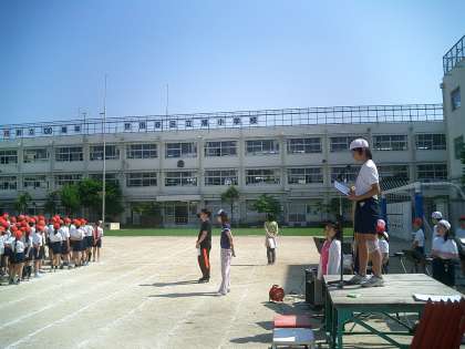 全校練習 (第2日目) その2 公開日 2010/06/02 更新日 2010/06/02 今日のできごと 全校練習もこの2回で終わりです。写真にはありませんが、優勝旗杯返還も授与も赤白の応援団長がしっかりやってくれています。 歌は、もうすこし大きな声が出ると良いですね。当日はしっかりお願いします。 全校練習 暑さに負けず、皆本当によく頑張りました。 写真は上から、得点発表を待つ緊張の一瞬、得点発表、おわりのことば の様子です。