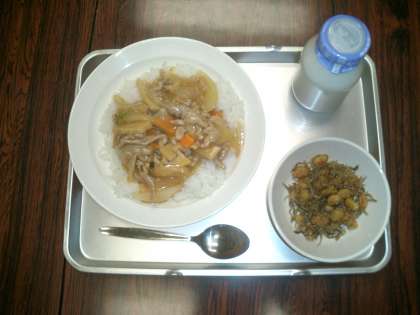 今日の給食は、何と『スタミナ丼』。