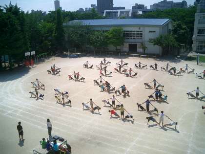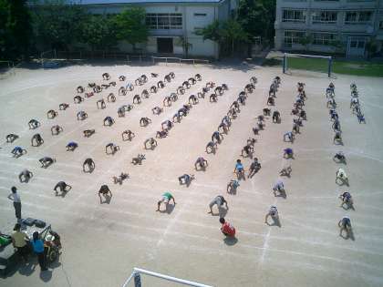5時間目、5・6年生は組体操『旭伝 2010 新たなる出発』の最終練習です。立ち位置、間の取り方、音楽とのタイミング・・・など最終確認をしながら、通して練習しました。みんな真剣です。意気込みが伝わってきます。明日の本番では、今までの練習の成果をフルに発揮してくれるものと信じています。