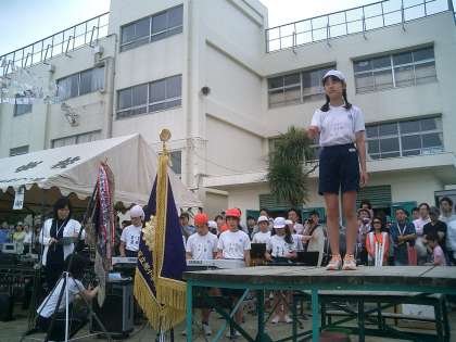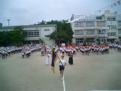 130周年記念運動会 その1 (開会式1) 公開日 2010/06/05 更新日 2010/06/05 今日のできごと 午前9時 赤組 白組がそろって入場です。 はじめのことばは1年生。みんな大きな声でしっかり言えました。 昨年度優勝の白組応援団長から優勝旗の返還 準優勝の赤組応援団長から準優勝杯が返還されました。 そのあと元気いっぱい『運動会の歌』を音楽委員会の伴奏で歌いました。旭の子どもたちの運動会にかける心意気が伝わってくる素晴らしい開会式で幕を開けました。