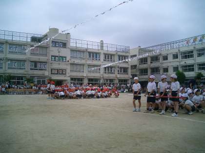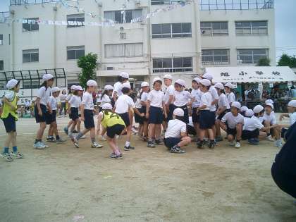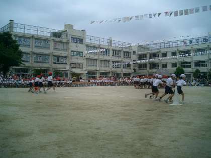 130周年記念運動会 その5 (3年 台風の目) 公開日 2010/06/05 更新日 2010/06/05 今日のできごと 3年生の団体競技『台風の目』の様子です。 4人のチームワークがポイントです。内側の子と外側の子のスピードが迫力を生みます。 足切りも赤白の全員の心がそろっていないとうまくいきません。果たして結果は??