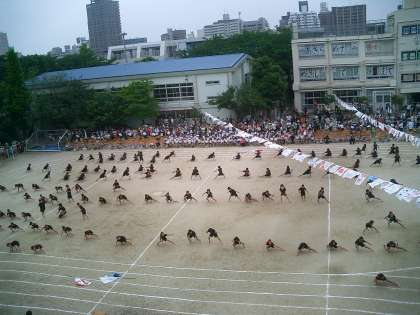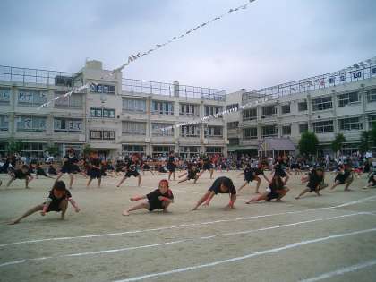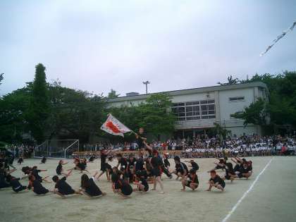 130周年記念運動会 その6 (旭ソーラン2010) 公開日 2010/06/05 更新日 2010/06/05 今日のできごと 3・4年生の表現は『旭ソーラン2010』です。 豪快でたくましい漁師の動きを表現しました。腰が深く落ちていましたか。力強さが伝わってきましたか。 大漁旗はクラスごとに作りました。ピラミッドも作るのが大変だったけれど、大成功です。ラストは、全員で校庭を一生懸命に走りました。3・4年生とっても頑張りました。 素晴らしい演技でした。