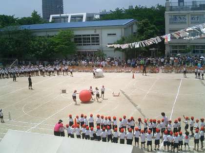 130周年記念運動会 その12 (大玉おくり) 公開日 2010/06/05 更新日 2010/06/05 今日のできごと 午後の部のトップは、全校児童による『大玉おくり』です。 1・2年生は間を転がします。3年生以上は頭の上を送ります。 さあ、どちらが勝つでしょうか。見ている保護者の方々も応援に必死です。