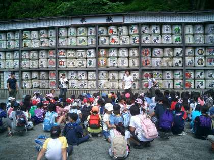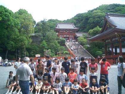 電車を乗り継いで、鎌倉に着きました。歩いて鶴岡八幡宮に到着です。学級ごとに写真を撮って、いよいよ大仏ハイキングコースへ入ります。