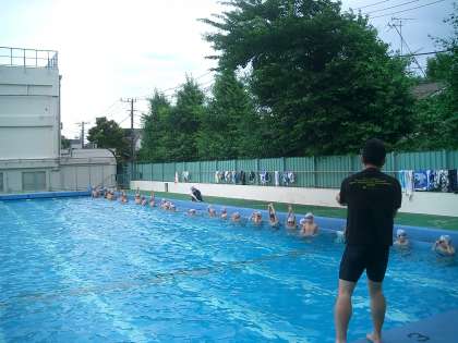 今日からプール、水泳指導が始まりました。全校朝会で、プールの安全について話をしました。