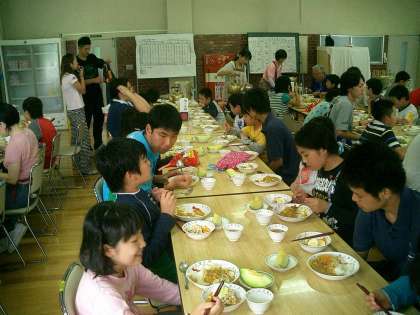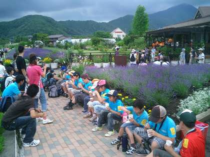 ひまらや 河口湖宿泊学習 その2 公開日 2010/07/03 更新日 2010/07/03 今日のできごと 広い体育館で、開園式を行いました。「楽しく元気よく」「安全に」「友達との協力/助け合い」の3つの約束をしました。 そのあと、河口湖班の大石公園まで散歩に出かけました。 ブルーベリーの花に囲まれてソフトクリームを食べました。とってもおいしかったです。お風呂に入ったあとは、夕ご飯、今日の夕食はカレーライスです。みんなおいしそうに食べていました。