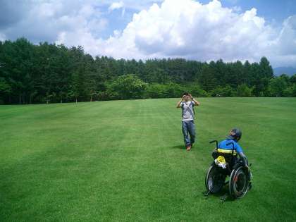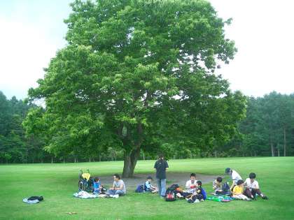 ひまらや 河口湖宿泊学習 その5 公開日 2010/07/03 更新日 2010/07/03 今日のできごと あたり一面の鮮やかな緑の芝生と白い雲と真っ青な青空。そこにポツンと凛々しく立っている大きな木。まさにテレビコマーシャルの世界です。その中で、一人占めして遊びました。ほかの学校の友達と一緒にお弁当を食べました。その模様をご覧ください。