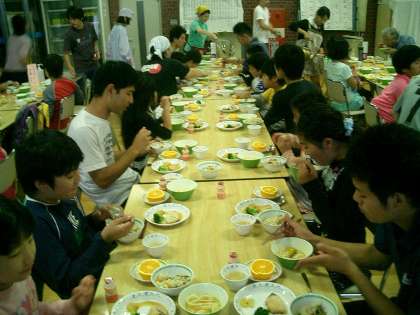 ひまらや 河口湖宿泊学習 その6 公開日 2010/07/03 更新日 2010/07/03 今日のできごと 宿舎について、おやつの牛乳とゼリーをいただきました。そのあと、シャボン玉をして楽しみました。夕食は、山梨名物のほうとううどんと炊き込みご飯、たくさん歩いたせいか食欲も旺盛です。夜は子ども会が予定されています。