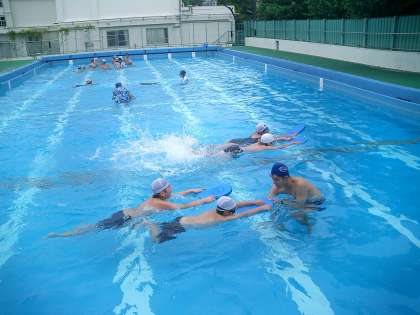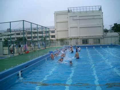 プールは最高です!!(ひまらや学級) 公開日 2010/07/09 更新日 2010/07/09 今日のできごと 5時間目は、ひまらや学級の子たちがプールで水泳の学習をしています。 全体で準備運動やシャワー、水慣れをやったあと、4つのグループに分かれて個別指導をしています。先生方や介助員の人たち全員が水の中に入って指導しています。ずいぶんと上達してきた子もいます。頑張れ!!ひまらやっこ!!