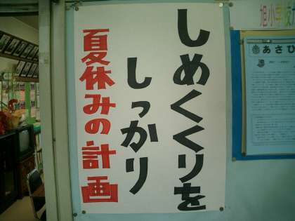 看護当番の先生からは、「今週中に少しずつ計画的に用具類を持ち帰るように」という話でした。終業式の日に大きな荷物でいっぱいにならないように少しずつ持ち帰るようにしましょう。
