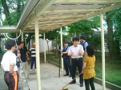 警察へ連絡し、警察官が来校。警察の方から不審者にどのように対応したらよいかについて説明をうけているところです。(写真中)