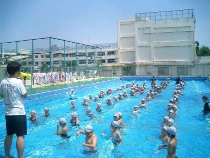 この暑さの中でたくさんの旭っ子がプールに参加しました。