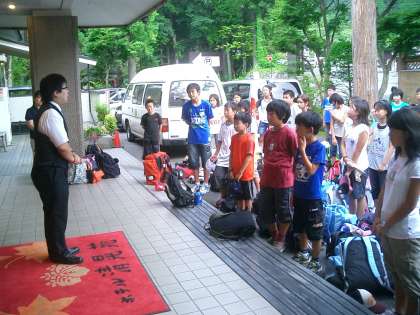 日光林間学園 その6 【宿舎にて開園式】 公開日 2010/07/30 更新日 2010/07/30 今日のできごと 今日1日目の見学を終えて、宿舎の「ホテル清晃苑」に到着です。宿舎の方々には今日から3日間お世話になります。 ここでも予定より早く着いたので、開園式のあと、お風呂にゆっくりと入ることができました。お風呂上がりのみんなは、とても清々しい顔をしています。 さあ、これから夕ご飯です。
