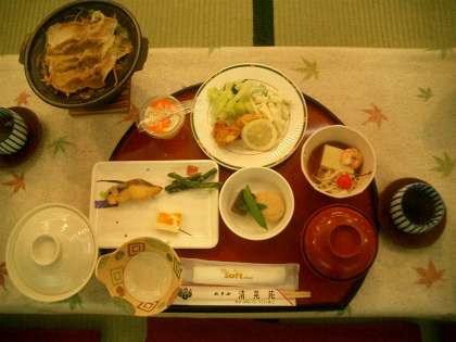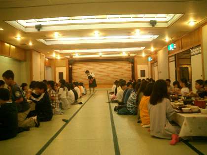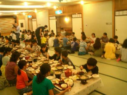 お腹が空きました。午後6時に百畳以上ある大広間(とにかく広い)夕ご飯です。