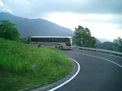 運転手さんのハンドルさばきは大したものです。バス酔いの子はだれもいません。