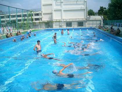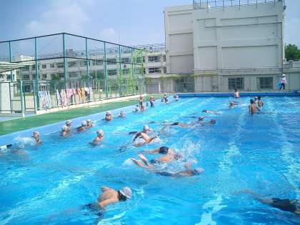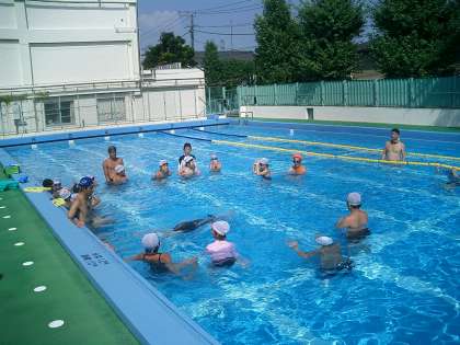夏休みの水泳教室も今日が最終日。連日の暑さで、今日もたくさんの子どもたちが参加し、泳ぐ力をつけました。