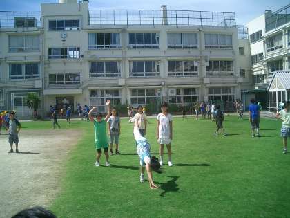 休み時間は、元気に外遊び 公開日 2010/09/07 更新日 2010/09/07 今日のできごと 猛暑が続いていますが、旭の子どもたちは休み時間になると大勢が外で元気に遊んでいます。野球やドッジボールをやったり、芝生では側転の練習をしたりしています。 この暑さなので、水分も適度にとって遊ぶようにしましょう。校庭の水道は直結式なので冷たくておいしいです。