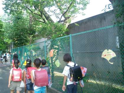 フェンスに6年生が飾り付けをしました。 その3 公開日 2010/09/22 更新日 2010/09/22 今日のできごと 火曜日の6時間目、6年2組の人たちが、正門沿いのフェンスに葉っぱの形の飾りをつけました。今朝、子どもたちは6年生の作品を見ながらの登校です。