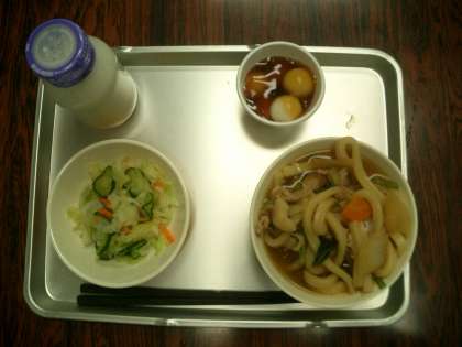 そんなこともあり、今日の給食は『ちゃんこうどんと月見だんご』がメニューです。