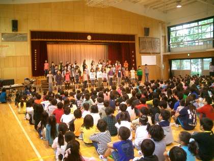 今朝の音楽朝会では、3曲の記念歌を流れにそって歌いました。来週から始まる合同練習で、子どもたちの美しい歌声がさらに響きわたるように盛り上げていきます。