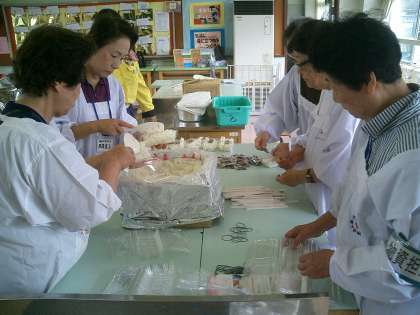 地域防災訓練 その2 公開日 2010/10/02 更新日 2010/10/02 今日のできごと 家庭科室では、ブロック校外の方々と日赤の方々が、アルファ米で作ったご飯をつめています。炊き出し訓練用のアルファ米のご飯、とてもおいしかったです。 また、ブロック校外さんは、通学路の安全マップも作成しています。 子どもたちの安全第一を考えてくださり、本当にありがとうございます。