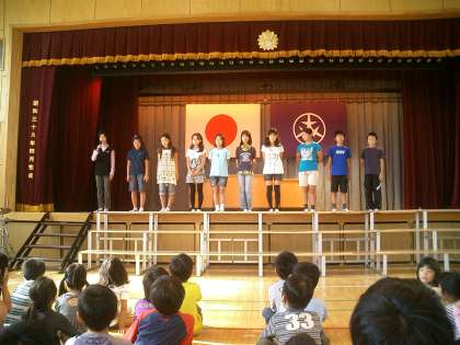 後期委員会 紹介集会 公開日 2010/10/07 更新日 2010/10/07 今日のできごと 今朝の児童集会は、後期の委員会の紹介です。 後期の代表委員長と各委員会の委員長がステージ上に並んで、それぞれの委員会の仕事内容や頑張ることを力強く紹介しました。 各委員会ごとに5・6年の各委員も起立してみんなに紹介されました。 後期委員会活動 開始! 頑張ってね。