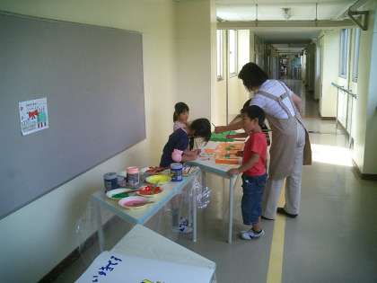 また、1年生の教室の近くの廊下では、1年生が階段アートを作っていました。